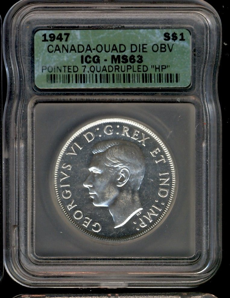 1947 $1 Ptd 7, Quad ICG MS63. A nice ful lustre issue for grade.