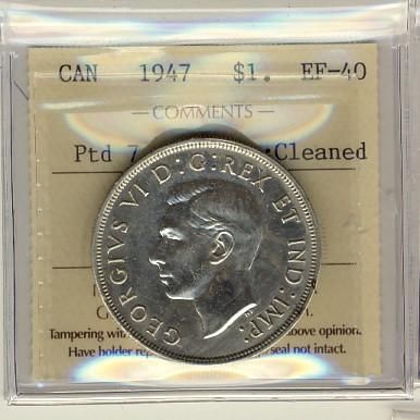 1947 $1 Ptd 7 w/Dot ICCS EF40. Designated cleaned.