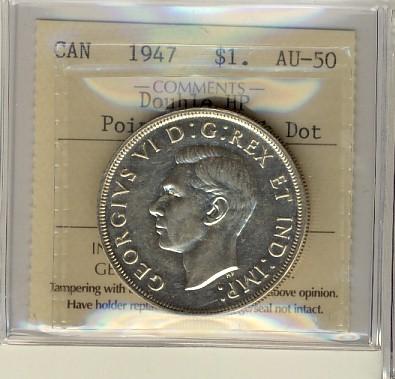 1947 $1 Ptd 7 with Dot ICCS AU50 Double HP