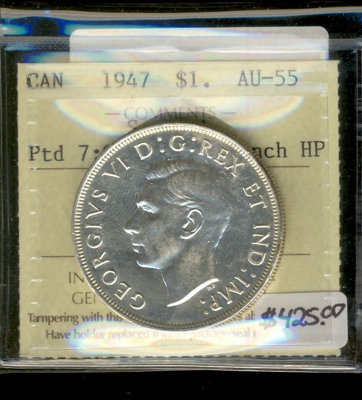 1947 $1 Ptd, Quad HP ICCS AU55. Designated with scratch.