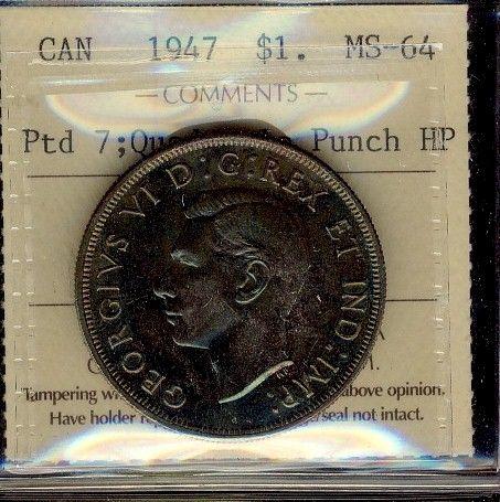 1947 $1 Ptd, Quad Punch ICCS MS64.