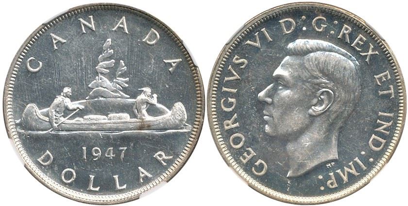 1947 $1 Ptd7 Dot ICCS/NGC MS63. Crossed ICCS Ptd7/Dot ICCS MS63. Fully brilliant and lustrous.