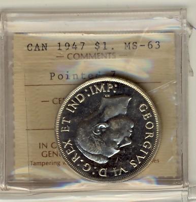 1947 $1 Ptd7 ICCS MS63. Brilliant and lustrous.