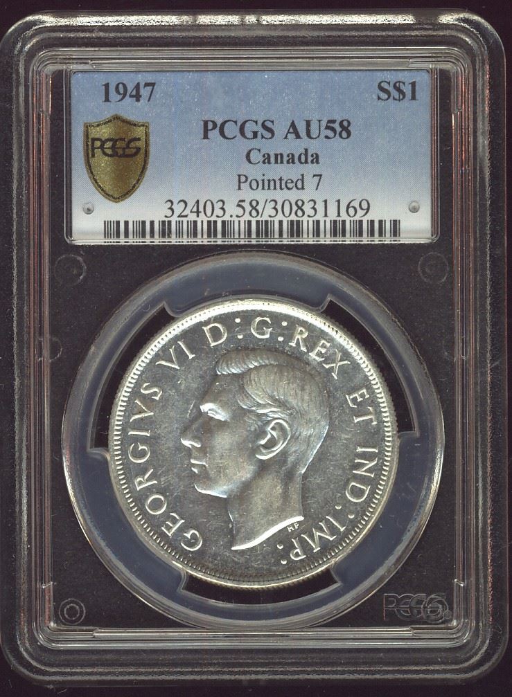 1947 $1 Ptd7 NGC AU58.