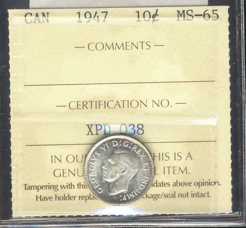 9. The cataloguer has taken every reasonable measure to ensure that all of the lots in this sale are as described and genuine. All raw coins and banknotes have been graded by the cataloguer or the auction house which represent our best professional opinion. To grade coins and banknotes, we use Canadian grading standards, 31 years of experience and good conscience. Grading is a subjective description in the opinion of the cataloguer or the auction house. Amongexperts there are often differences of opinion on the grading and the eye appeal of a coin. The strike and the state of preservation are often debated. TCNC acts as an agent between consignors and buyers. TCNC does not guarantee that any coin or banknote catalogued will meet the standards, or the grade, of any third party grading companies. No warranty, whether impressed or implied.