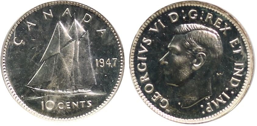 1947 10¢ PCGS Gem SPECIMEN-65 Fully brilliant WITH SUPERB REFLECTIVE SURFACES.