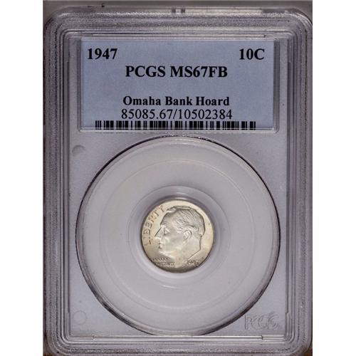 1947 10C MS67 Full Bands PCGS. Frost-like surfaces exh 1947[10C] MS67 Full Bands PCGS.