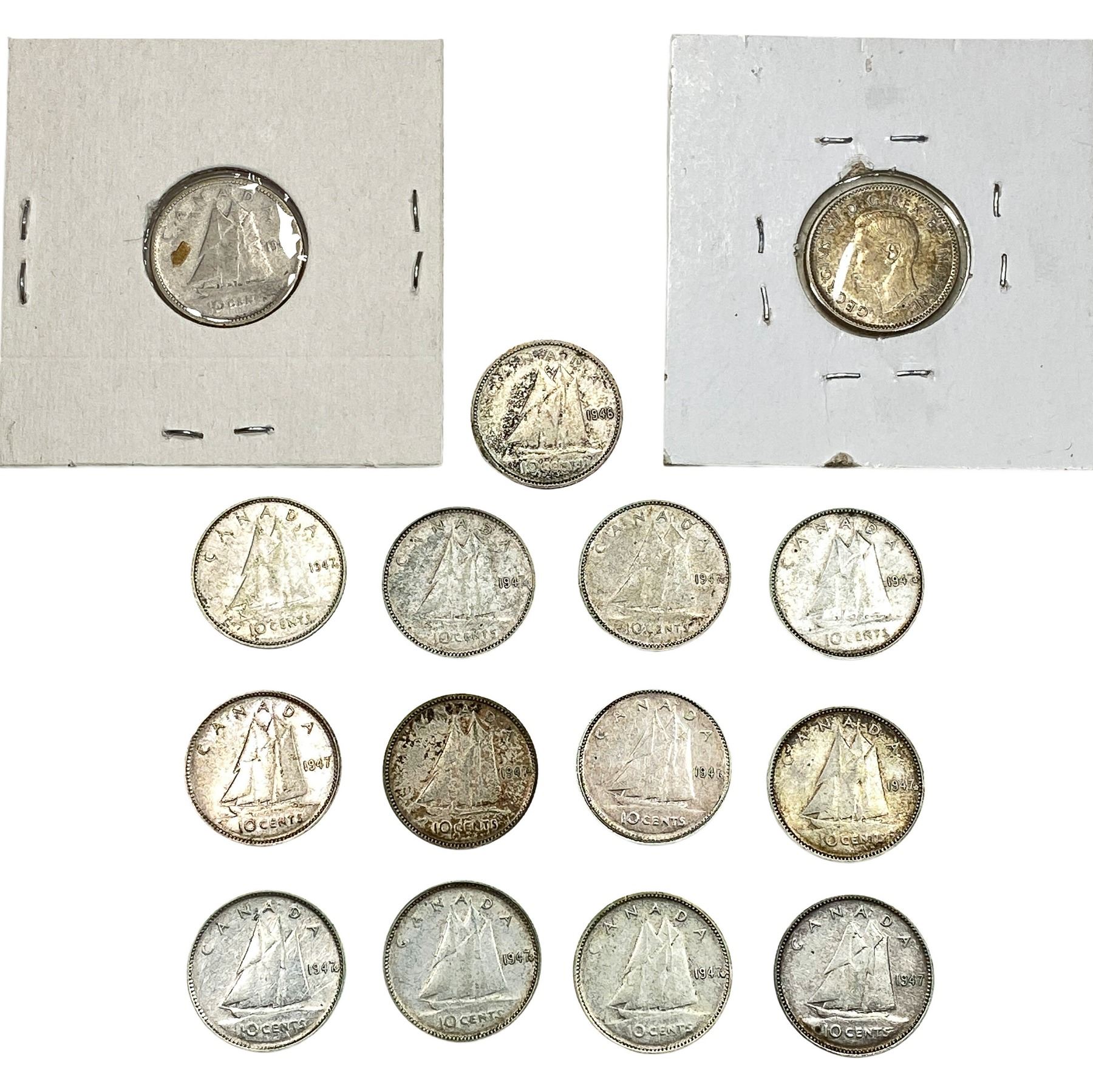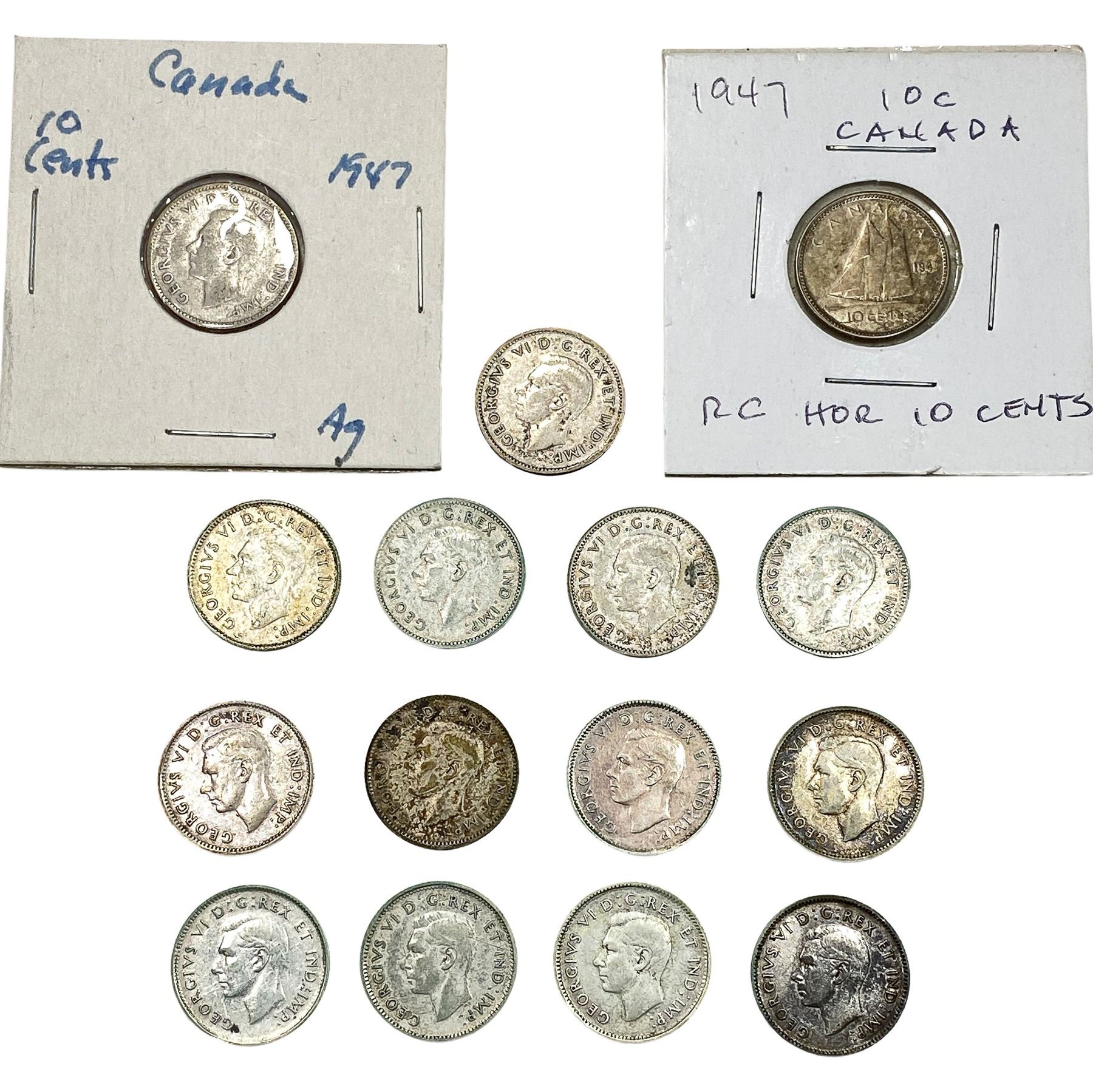 1947, 1947 ML Canada Silver Dime Lot [15 Coins]