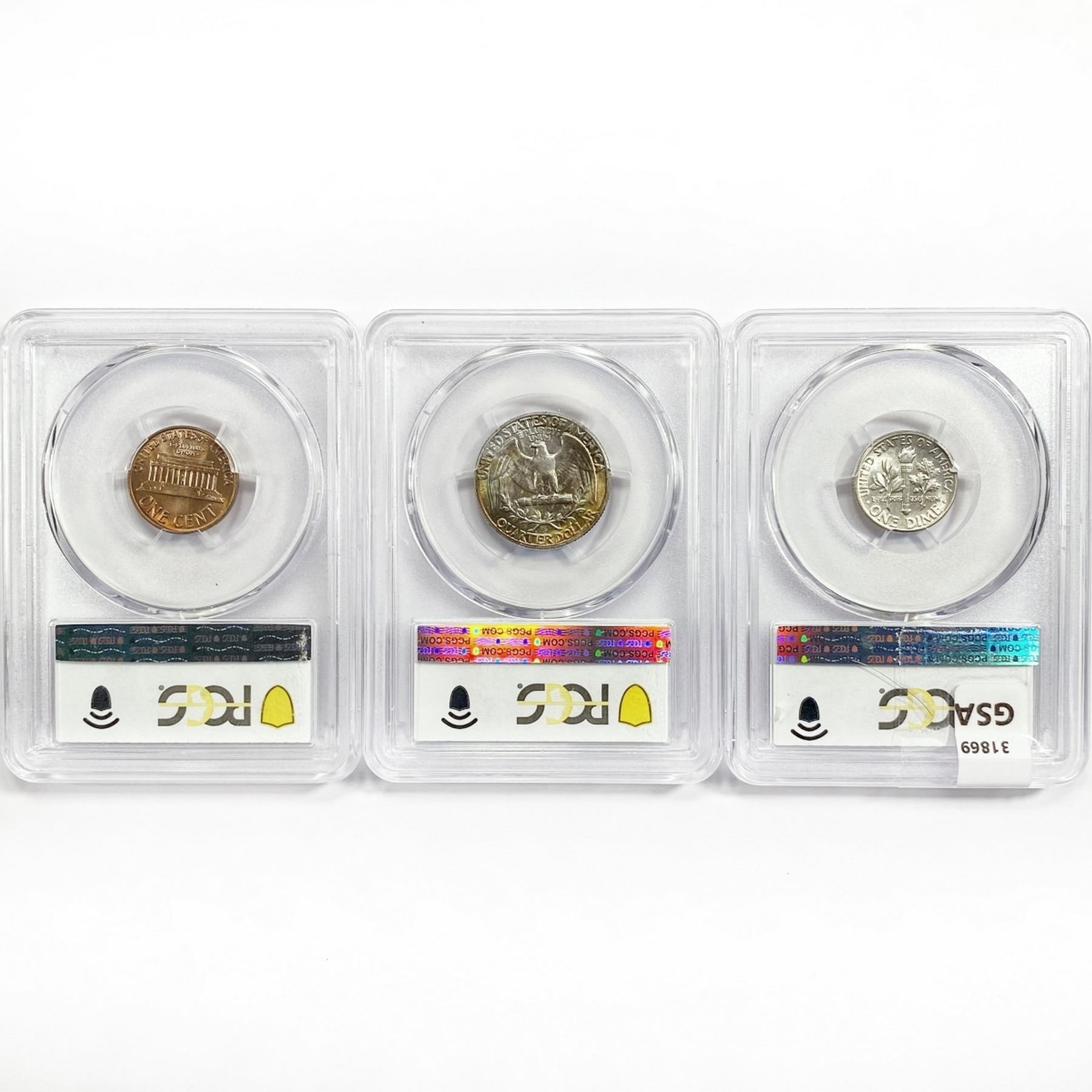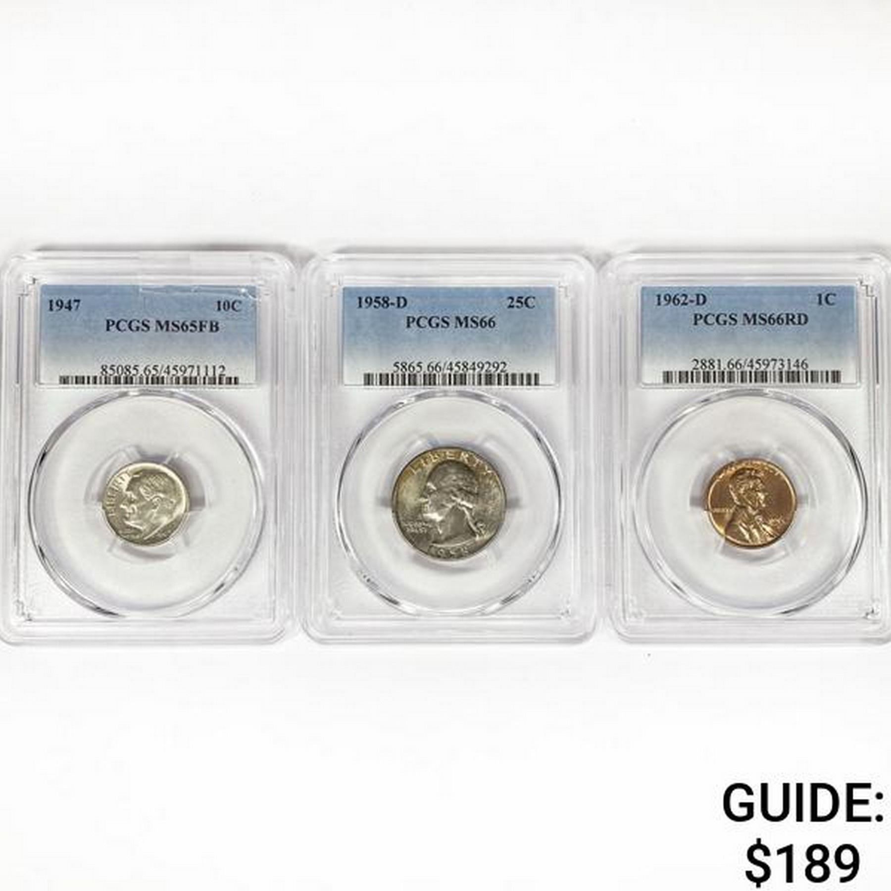 1947-1962 Set [3] 1C, 10C, 25C PCGS MS