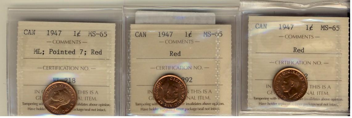 1947(2) & 1947 ML Ptd ICCS MS65. Lot of 3 coins.