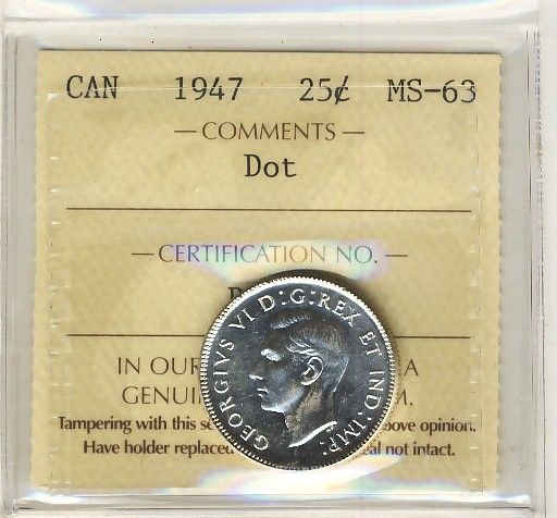 1947 25¢ Dot ICCS MS63. Brilliant and lustrous.
