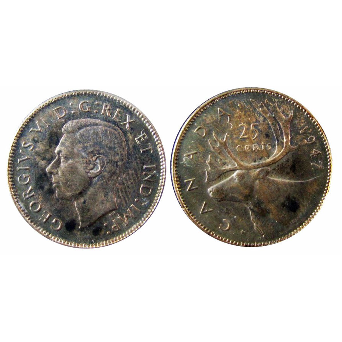 1947 25¢ Dot ICCS MS65. Well struck with attractive toning over full underlying lustre. A superior example. Very flashy, popular and quite scarce in this top condition.