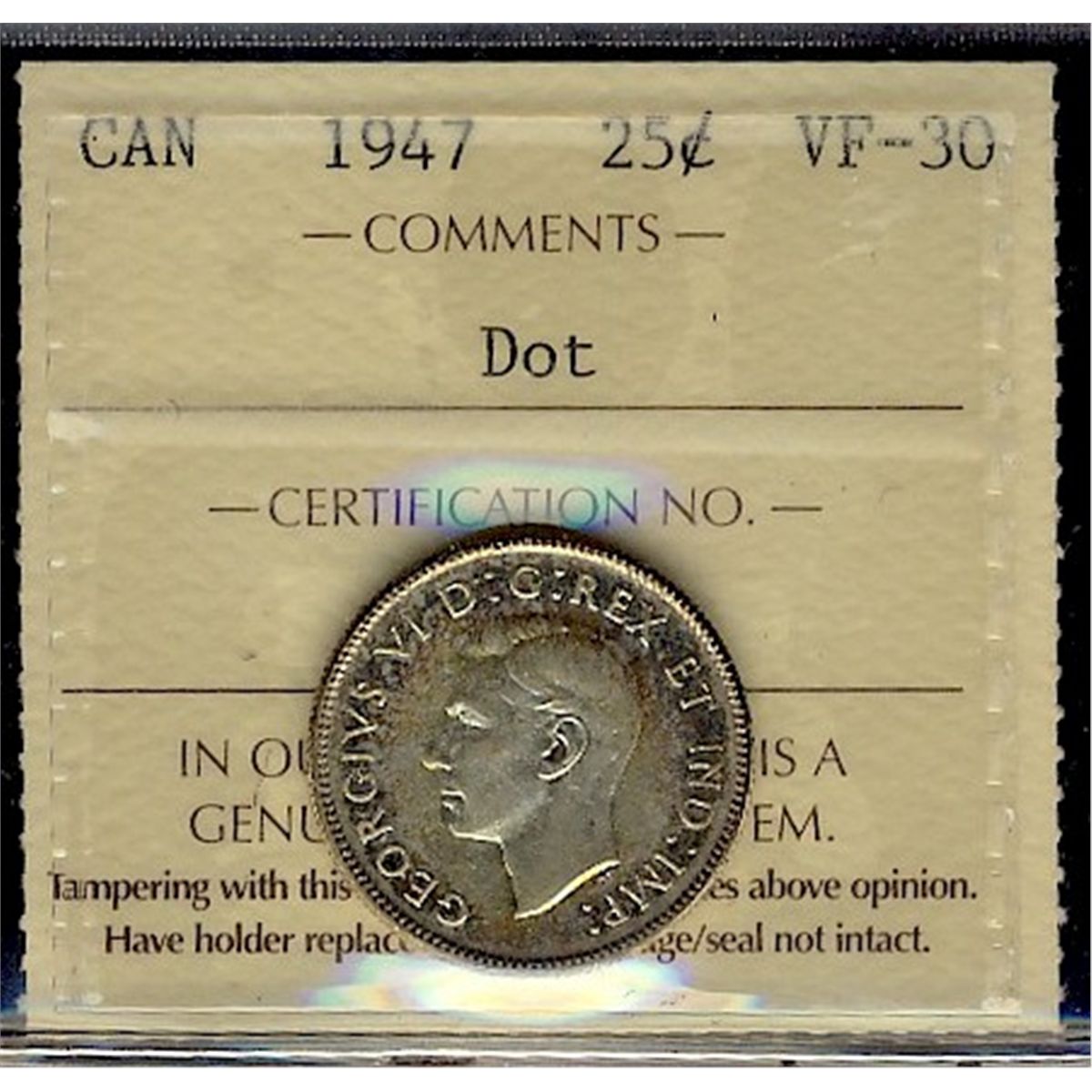 1947 25¢ Dot ICCS VF30.