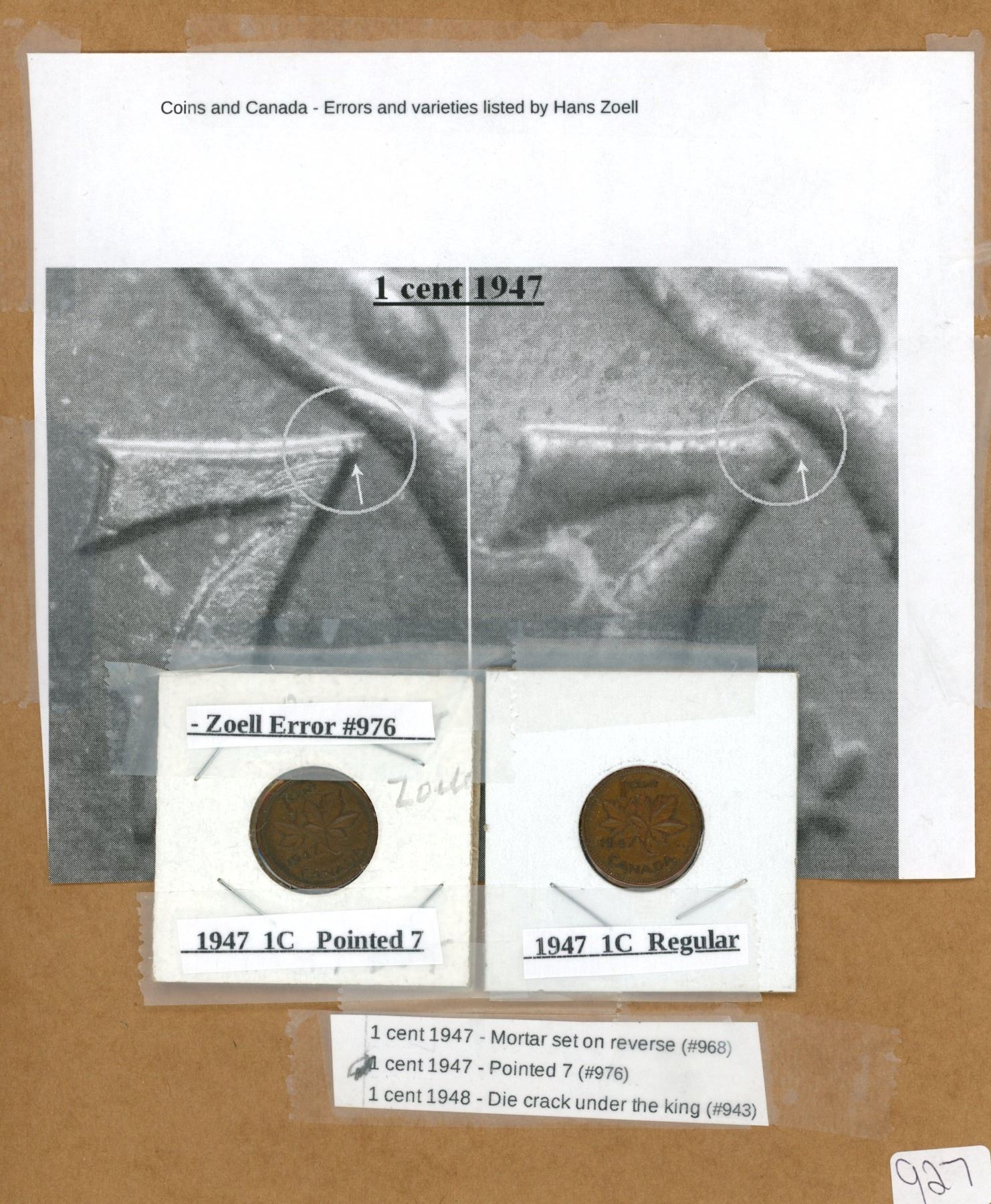1947 2X Canadian Penny, Pointed/Slanted