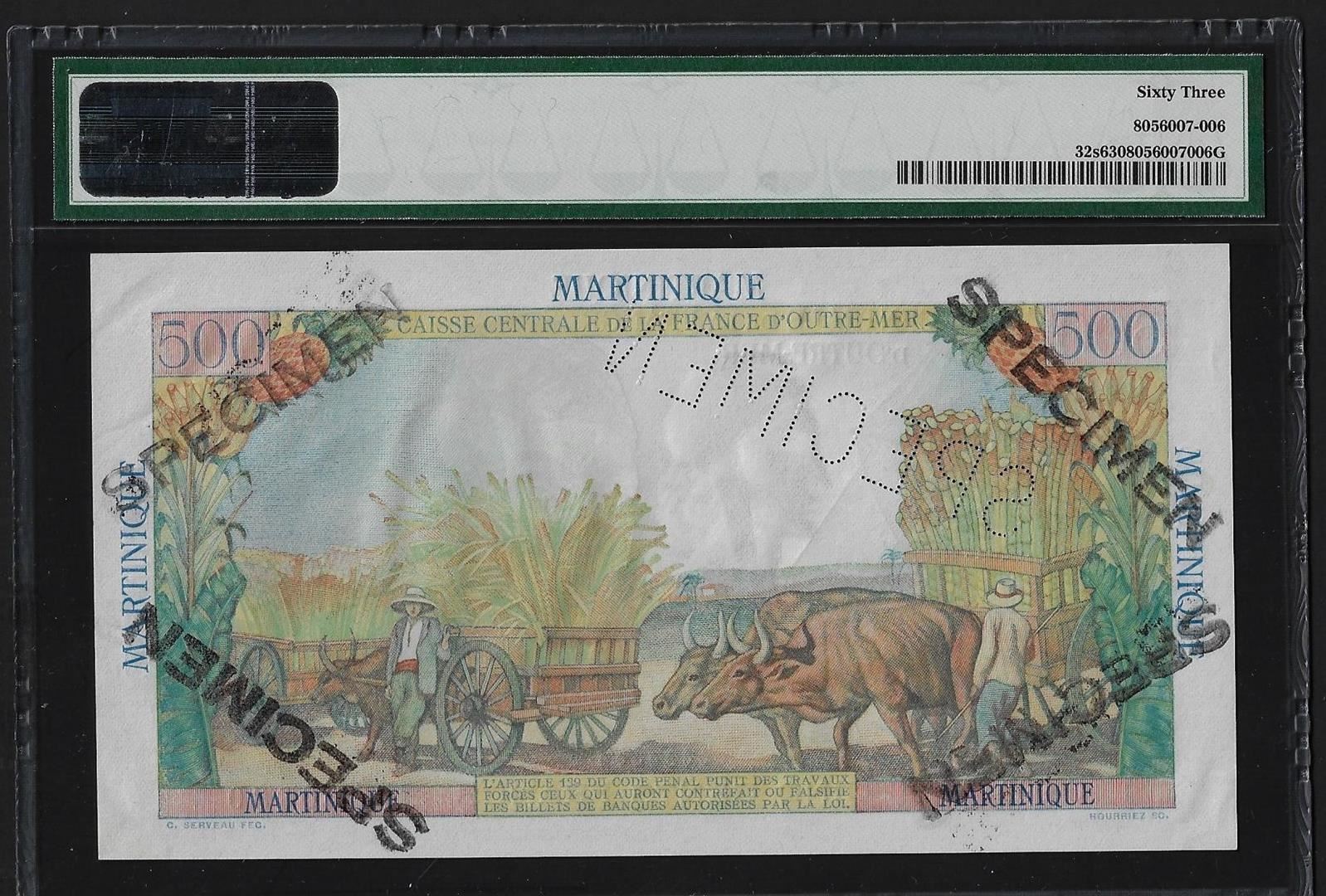 1947-49 Martinique 500 Francs Specimen Note Pick# 32s PMG Choice Uncirculated 63