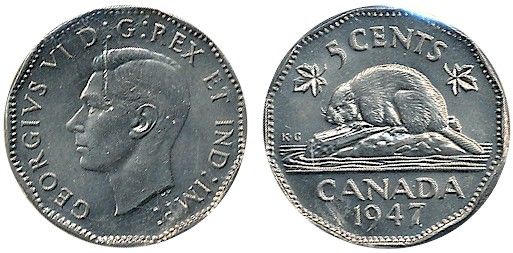 1947 5¢ Dot ICCS MS63. Designated with flaw.