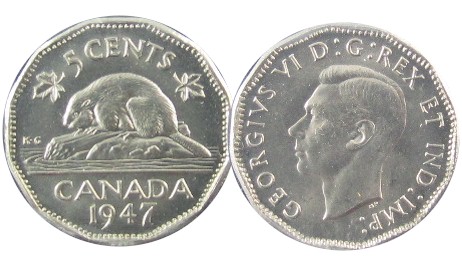 1947 5¢ Dot ICCS MS65. Gem lustre. Scarce.