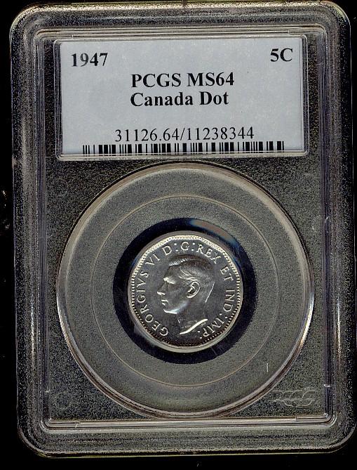1947 5¢ Dot PCGS MS64. A key variety in Mint condition.