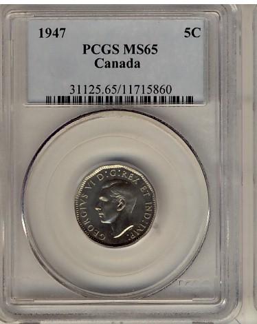 1947 5¢ PCGS MS65. Another tough example in MS65.