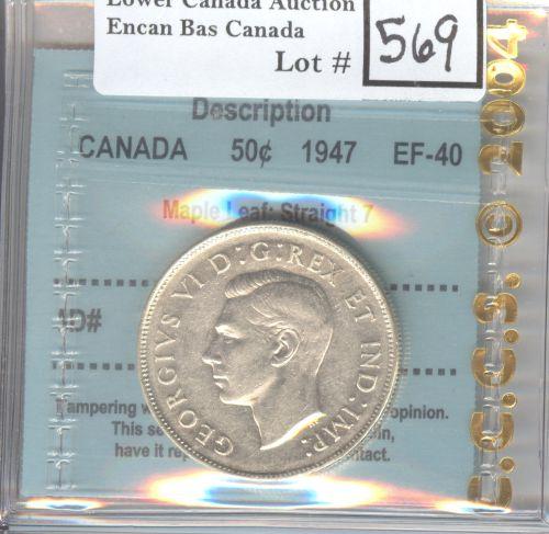 1947 Maple Leaf; Straight 7 CCCS certified EF-40.