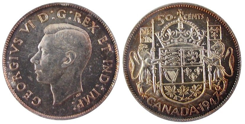 1947 50 Cents ICCS MS-64; Maple Leaf.