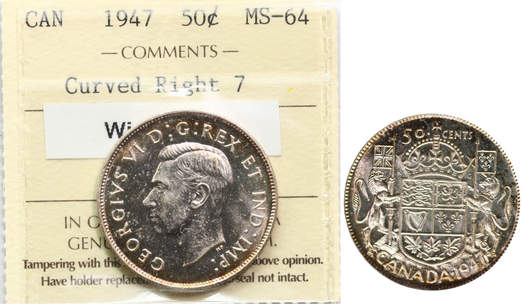The cataloguer has taken every reasonable measure to ensure that all of the lots in this sale are as described and genuine. All raw coins and banknotes have been graded by the cataloger or the auction house which represent our best professional opinion. To grade coins and banknotes, we use Canadian grading standards, 42 years of experience and good conscience. However, grading is a subjective description in the opinion of the cataloger or the auction house. Among experts there are often differences of opinion on the grading and the eye appeal of a coin. The strike and the state of preservation are often debated. The Canadian Numismatic Company acts as an agent between consignors and buyers. The Canadian Numismatic Company does not guarantee that any coin or banknote cataloged will meet the standards, or the grade, of any third party grading companies. No warranty, whether impressed or implied. Items are as is, no warranty given. We cannot accept responsibility and waive all liability resulting in financial losses, and or incidentals accruing from the sale of any items, nor can we guarantee that items graded by third party services will grade the same if submitted to a different grading service or re-submitted to the same company. Statements by The Canadian Numismatic Company regarding the condition, the eye appeal, the strike and the population of items are for guidance only. All lots offered are sold "AS IS". Title to all lots remains with the auction house until paid for in full by the purchaser. But they are held at the risk of the purchaser once the time of the sale.