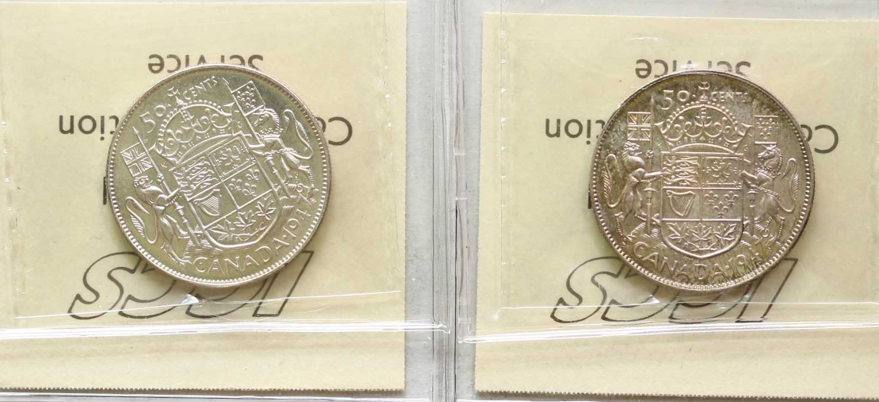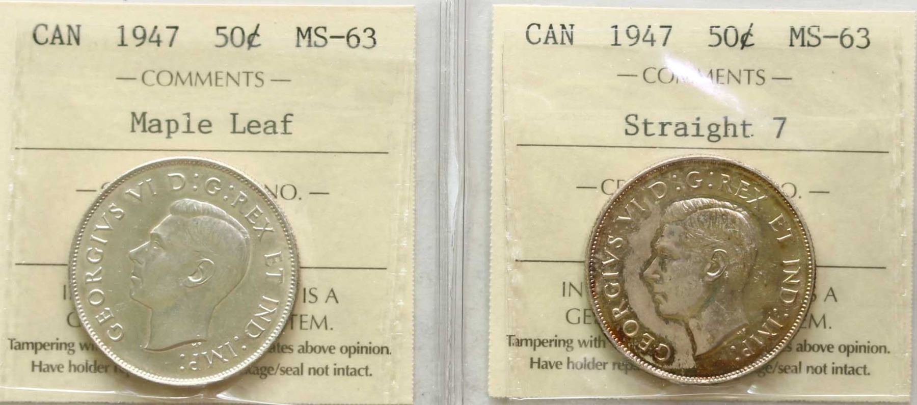 1947 50¢ "ML", 1947 "Straight 7" Both coins ICCS Choice Mint State-63.