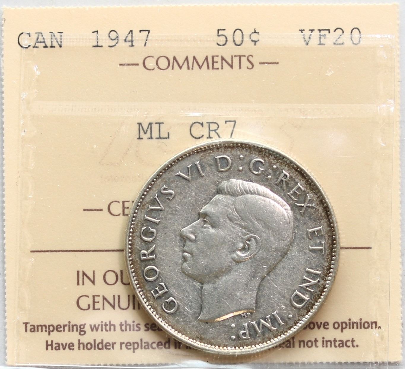 1947 50¢ "ML CR" ICCS Very Fine-20, A rare and sought after variety! Untoned.
