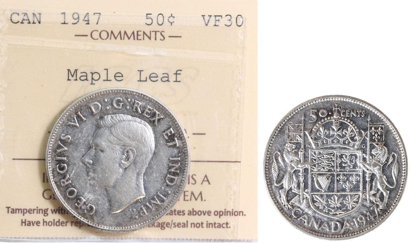 1947 50¢ "Maple Leaf" ICCS Choice Very Fine-30