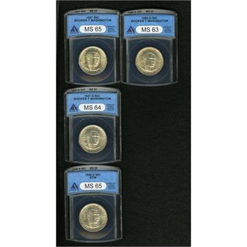 <B>1947 50C BTW MS65 ANACS; 1947-D BTW MS64 ANACS; 1948-S BTW MS65 ANACS; 1950-D MS63 ANACS.</B></I><BR><I>From The Frank DuVall Collection of U.S. Commemoratives.</B></I><BR><BR><b>Shipping:</b> Coins & Currency (<a target="_blank" href="http://www.heritageauctions.com/common/shipping.php">view shipping information</a>)