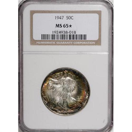 <B>1947 50C MS65</B></I><img src="/images/star.gif" width="10" height="10" alt="" border="0"><B> NGC.</B></I> NGC Census: (2295/612). PCGS Population (2922/840). Mintage: 4,094,000. Numismedia Wsl. Price for NGC/PCGS coin in MS65: $170. (#6630)<BR><BR><B>Coin Engraver:</B> Adolph A. Weinman<BR><BR><b>Shipping:</b> Coins & Currency (<a target="_blank" href="http://www.heritageauctions.com/common/shipping.php">view shipping information</a>)