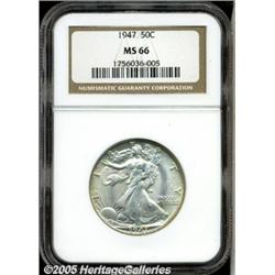 <B>1947 50C MS66 NGC.</B></I> Well struck, with touches of light-gold color on the obverse. The lustrous surfaces are virtually devoid of any significant abrasions.