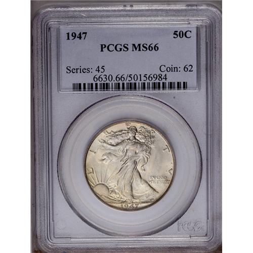 1947 50C MS66 PCGS. Pastel bluish-gray and gold patina 1947[50C] MS66 PCGS.