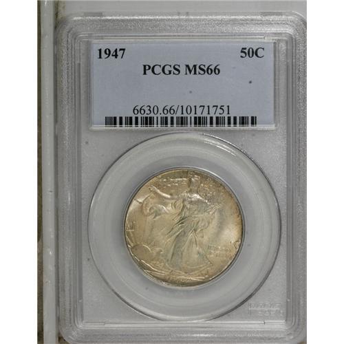 <B>1947 50C MS66 PCGS.</B></I> Vivid apple-green and crimson-rose patina adorns the reverse of this lustrous and meticulously struck Premium Gem. The obverse is primarily a golden-gray color. An available date, but desirable with such exceptional quality.<BR><BR><b>Shipping:</b> Coins & Currency (<a target="_blank" href="http://www.heritageauctions.com/common/shipping.php">view shipping information</a>)
