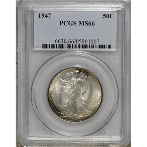 <B>1947 50C MS66 PCGS.</B></I> PCGS Population (832/19). NGC Census: (558/51). Mintage: 4,094,000. Numismedia Wsl. Price for NGC/PCGS coin in MS66: $300. (#6630)<BR><BR><B>Coin Engraver:</B> Adolph A. Weinman<BR><BR><b>Shipping:</b> Coins & Currency (<a target="_blank" href="http://www.heritageauctions.com/common/shipping.php">view shipping information</a>)