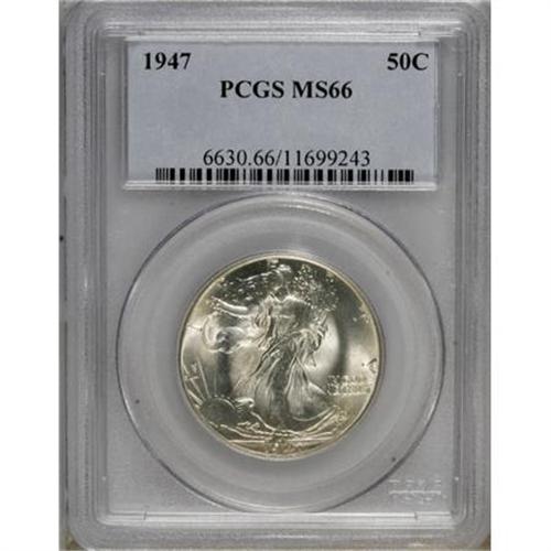 <B>1947 50C MS66 PCGS.</B></I> PCGS Population (842/19). NGC Census: (561/51). Mintage: 4,094,000. Numismedia Wsl. Price for NGC/PCGS coin in MS66: $300. (#6630)<BR><BR><B>Coin Engraver:</B> Adolph A. Weinman<BR><BR><b>Shipping:</b> Coins & Currency (<a target="_blank" href="http://www.heritageauctions.com/common/shipping.php">view shipping information</a>)
