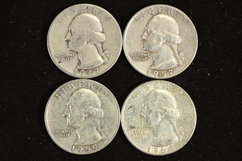 1947,57-D,59-D & 64-D WASHINGTON SILVER QUARTERS