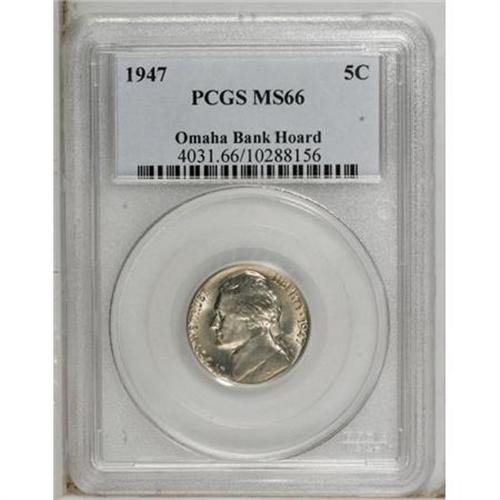 1947 5C MS66 PCGS. Ex: Omaha Bank Hoard. PCGS Popu