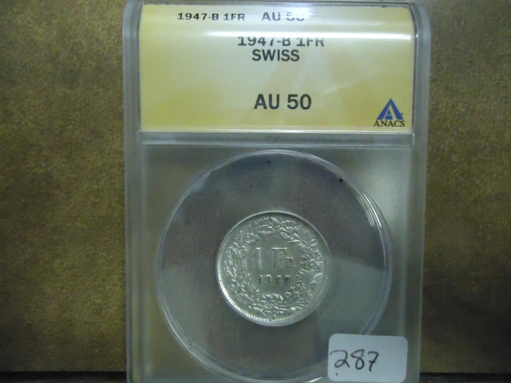 1947-B SWISS SILVER FRANC ANACS AU50