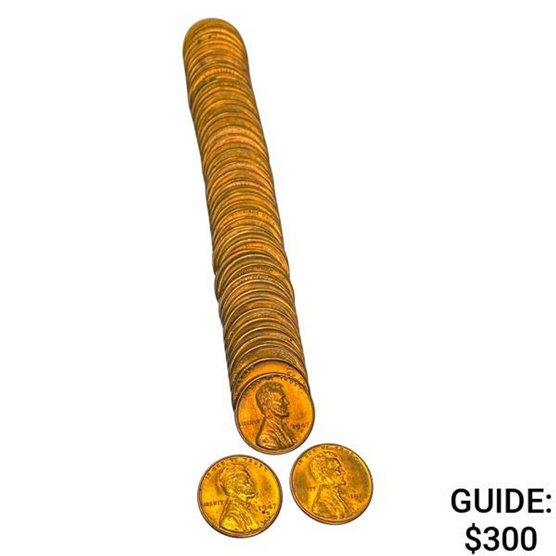 1947 BU 1947-S Lincoln Cent Roll (50 Coins)