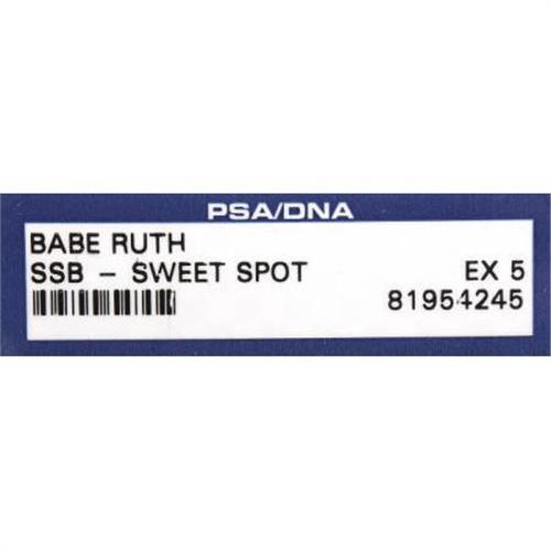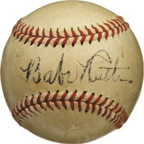 <B>1947 Babe Ruth Single Signed Baseball, PSA EX 5.</B></I> This Official American League (Harridge) ball has found its way home again, signed by the Babe in 1947 at Dallas, Texas' Reverchon Park, literally across the street from the Heritage offices. It comes to us from the son of Harry Rubin, an early twentieth century European immigrant who embraced his adopted country's national pastime with a fervor, spending much of his young adult years at Yankee Stadium in awe of the Babe. In 1933, Rubin was forced to leave New York for Dallas, though his love of baseball, and the Yankees specifically, never faltered. So, when Rubin was trying to advance the sport in Dallas as the district athletic officer of the American Legion, he rather optimistically placed a call to his idol asking for assistance. Typical of Ruth's well-documented generosiity, he accepted the invitation, arriving at Dallas Love Field airport to huge crowds headed by Rubin and Dallas Mayor Jimmy Temple. Now, six decades later, the prized keepsake of that meeting arrives on our auction block. The black fountain pen sweet spot signature still projects wonderfully, garnering a rather stingy score of 6/10 from the PSA graders. The ball grades at 4/10 due to moderate toning and surface wear for the combined score as listed. A letter of provenance from the son of Harry Rubin is included in the lot. <I>Full grading LOA from PSA/DNA. LOA from James Spence Authentication.</B></I><BR><BR><b>Shipping:</b> Balls, Pucks, etc., Small (<a target="_blank" href="http://www.heritageauctions.com/common/shipping.php">view shipping information</a>)