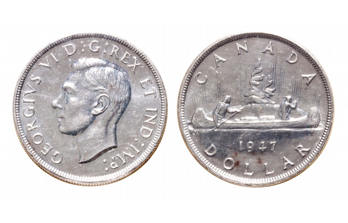 1947. Blunt 7. ICCS Mint State-64. A lustrous and brilliant silver dollar.
