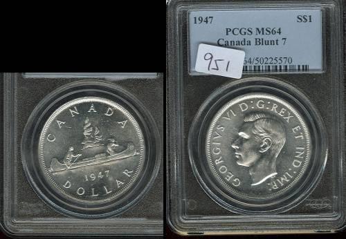 1947 Blunt 7 PCGS MS64 Fully white and lustrous coin. A nice coin.