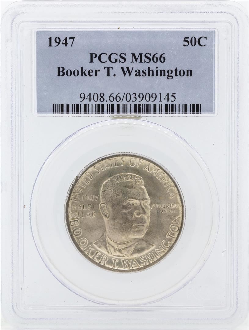 One 1947 Booker T Washington Memorial Commemorative Half Dollar Coin PCGS MS66. PCGS Graded.