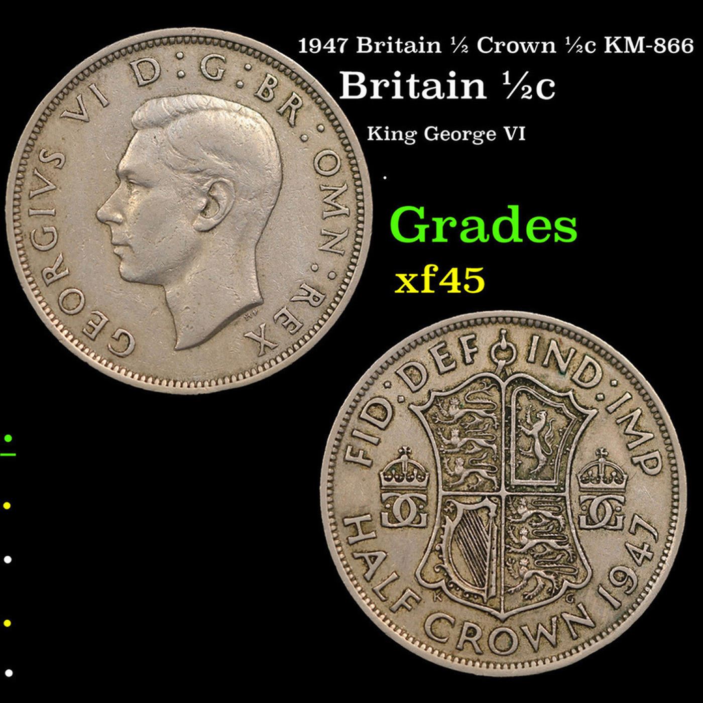 1947 Britain 1/2 Crown 1/2c KM-866 Grades xf+.