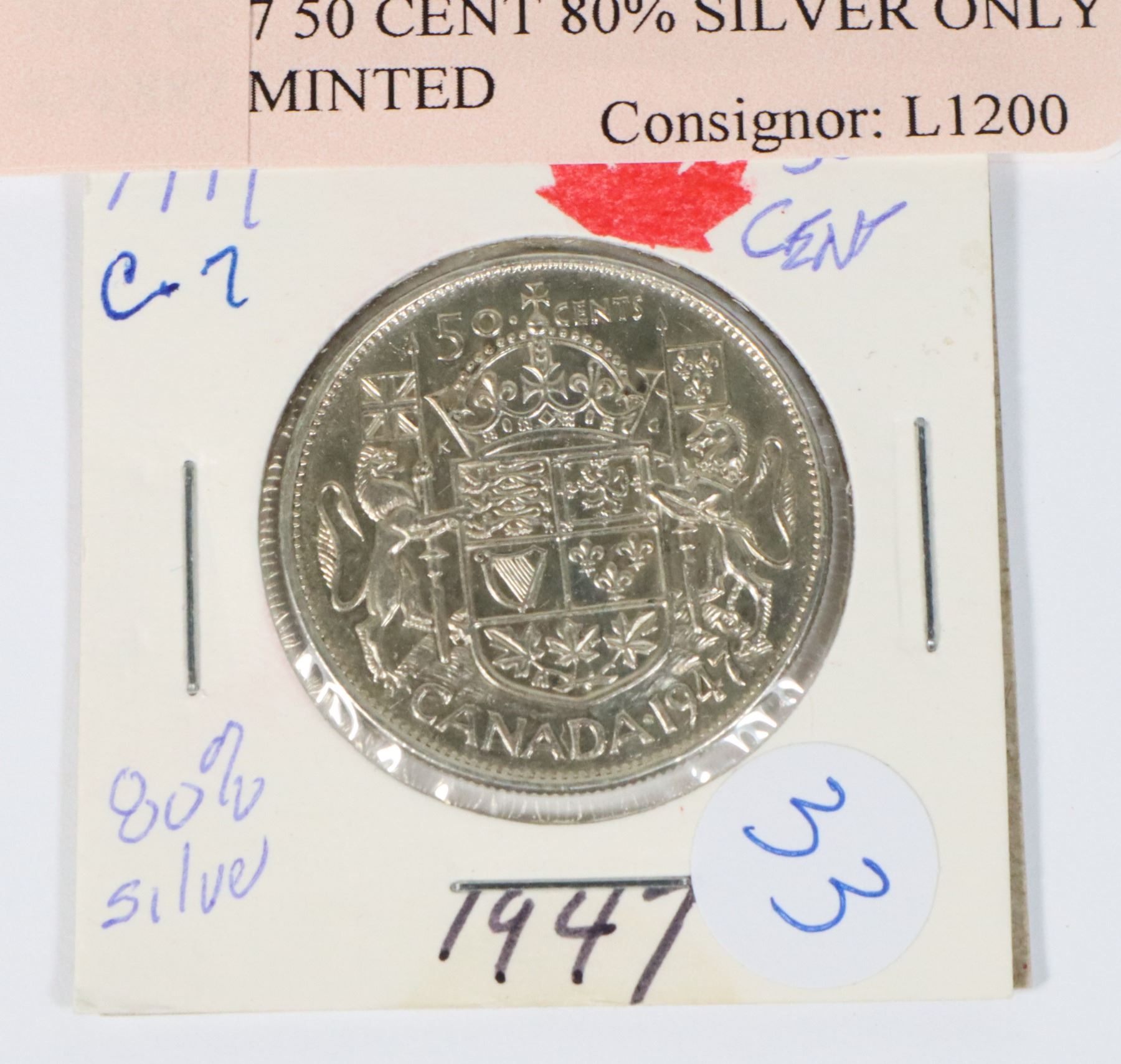 1947 C- 7 50 CENT 80% SILVER ONLY 424,887 MINTED