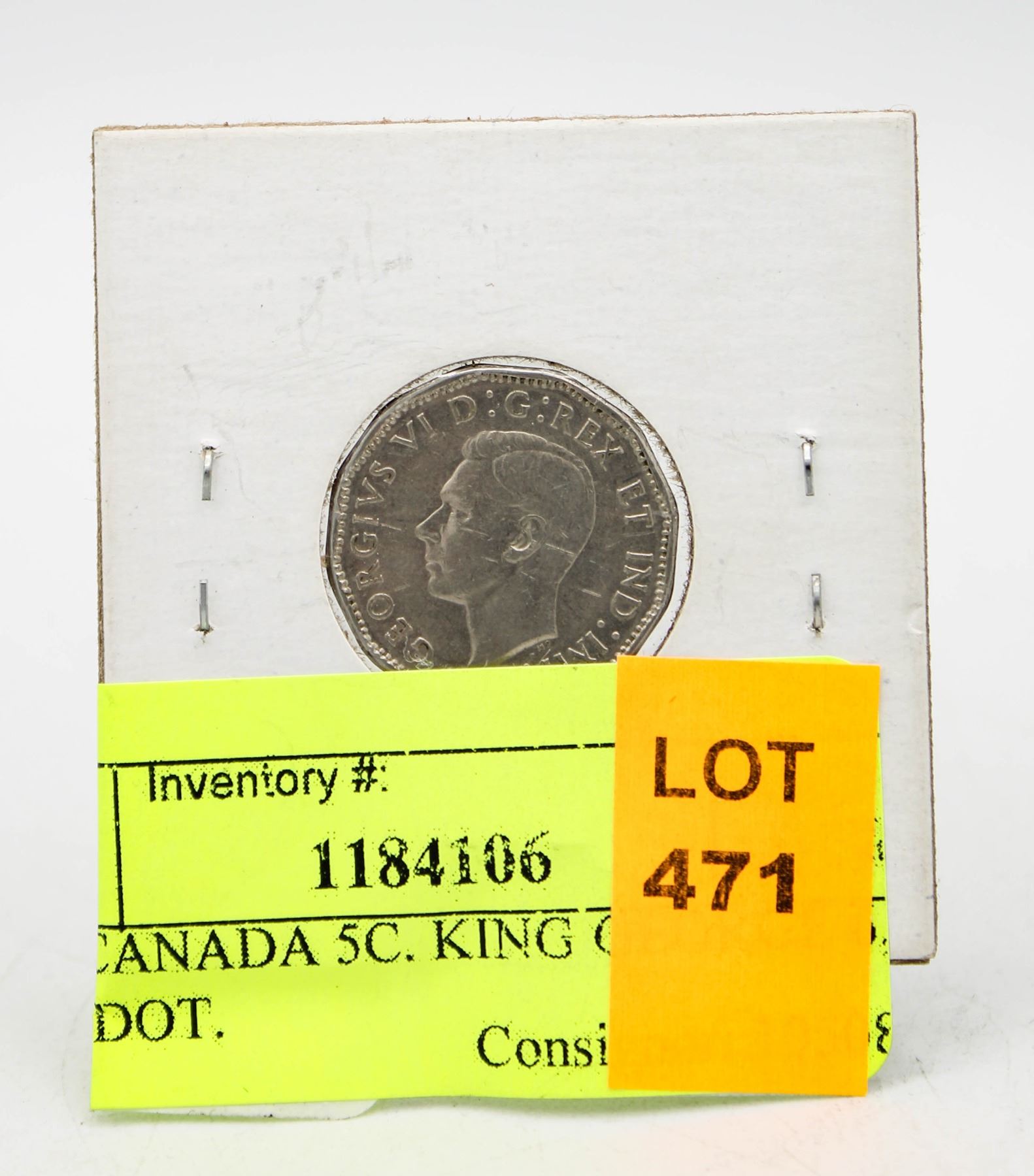1947 CANADA 5C. KING GEORGE 6, 1947, DOT.