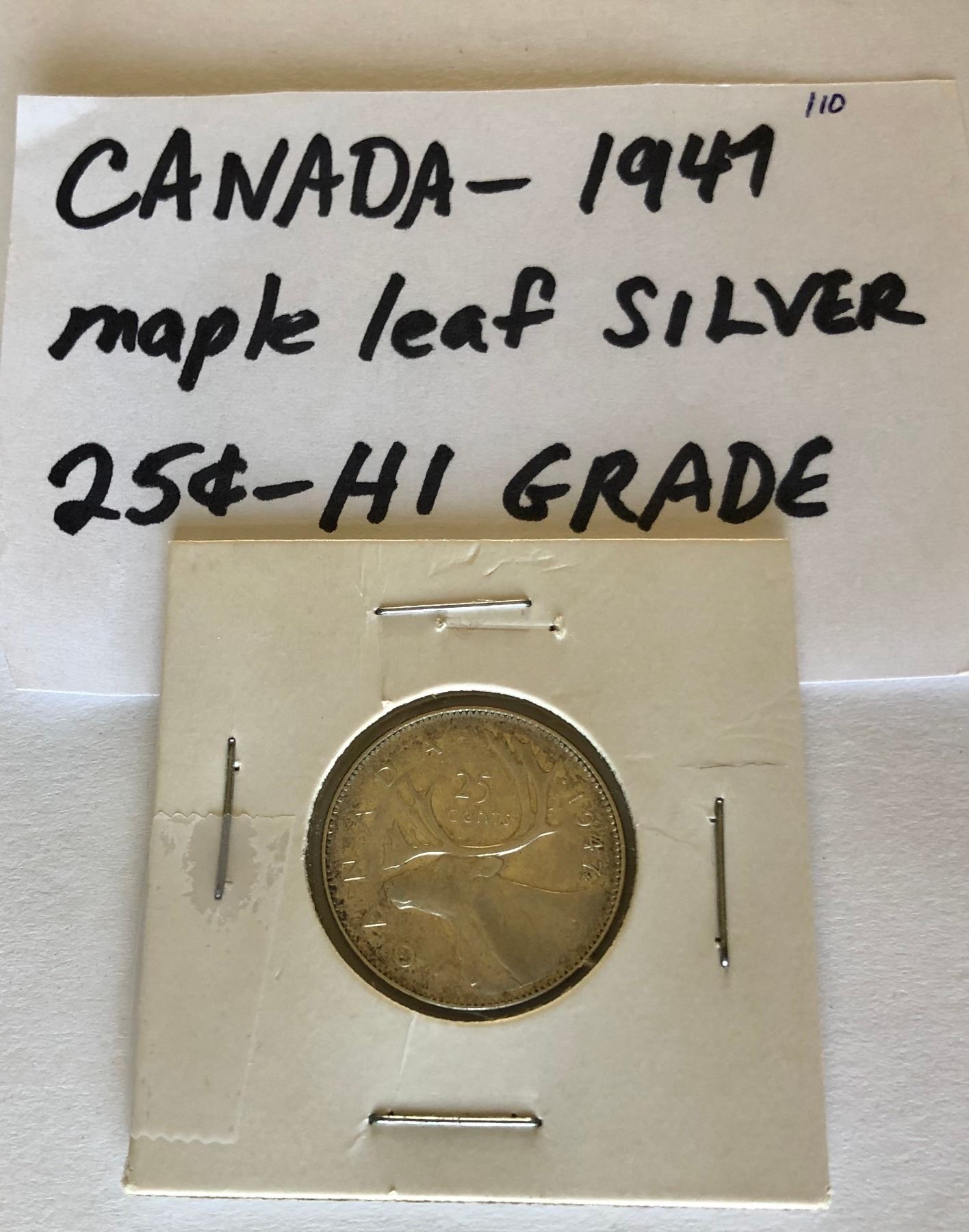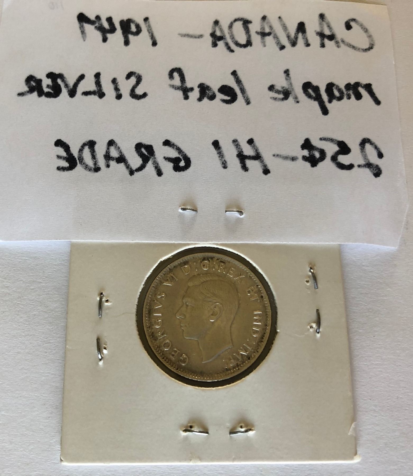 1947 CDN MAPLE LEAF SILVER 25 CENT COIN