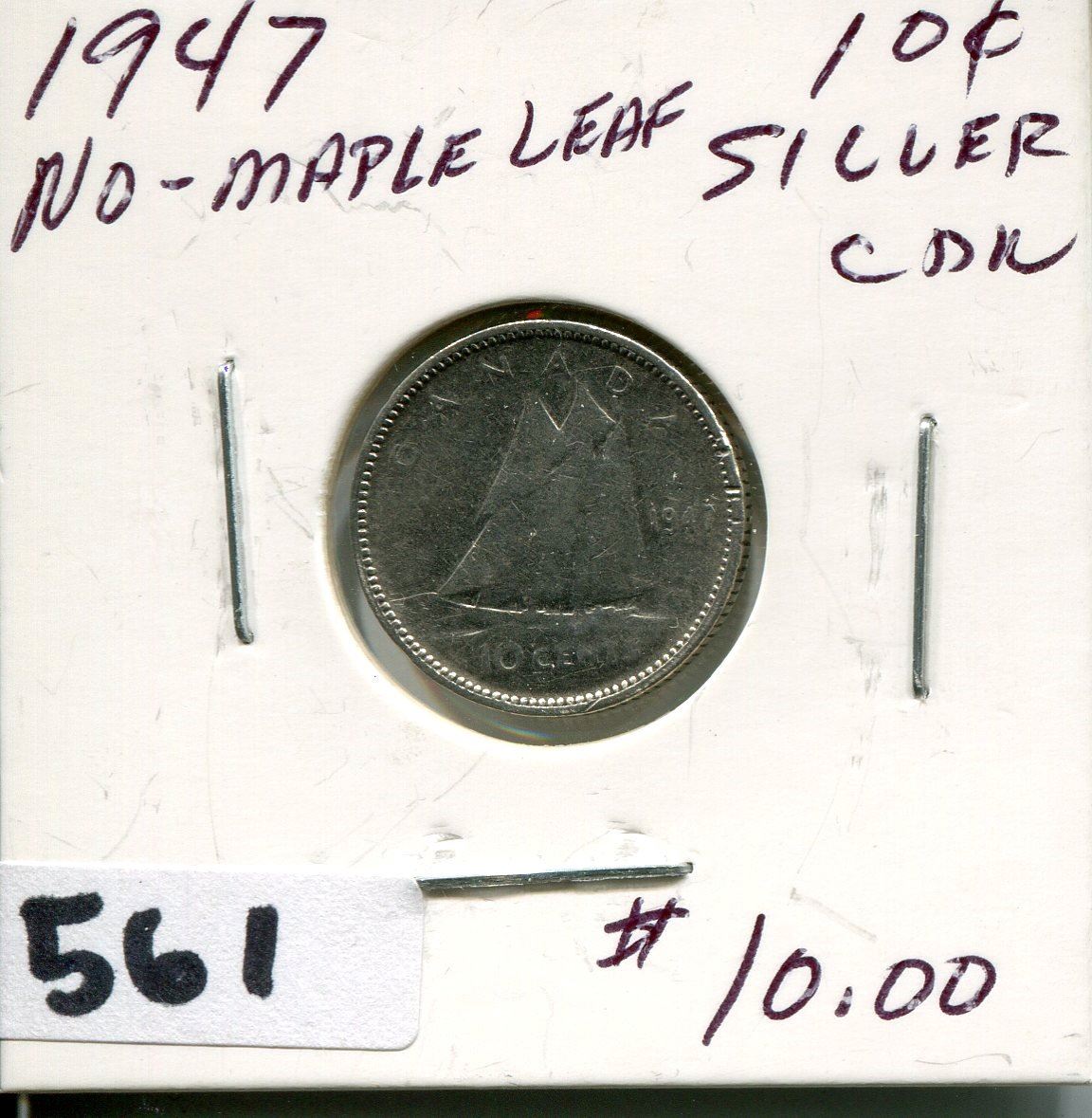 1947 CNDN SILVER DIME NO MAPLE LEAF