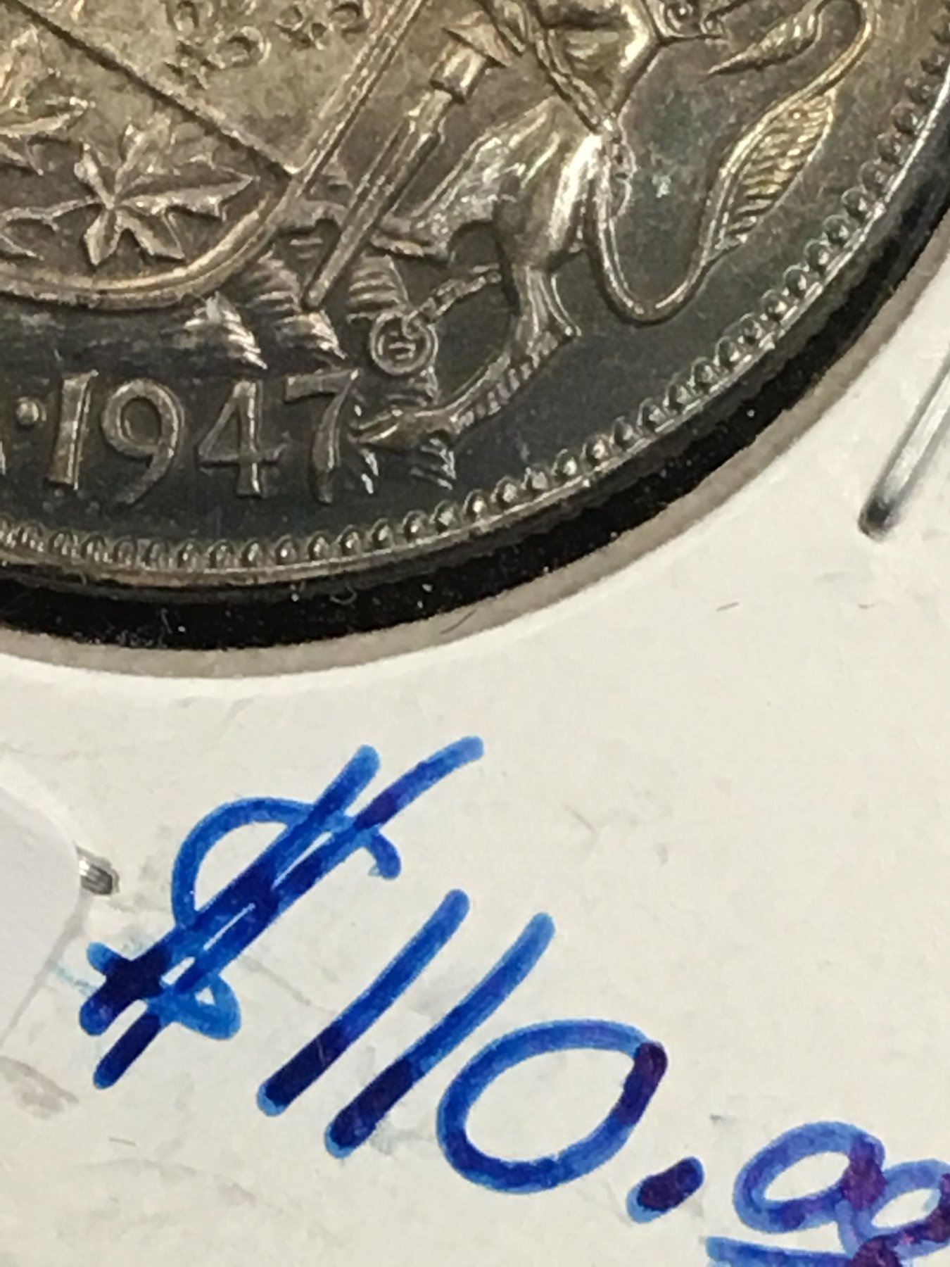 NICE UNLISTED VARIETY 1947 CURVED 7 OVER 7. NOT LISTED IN ANY CATOLOUGUE!! RARE!! TONED AU WITH UNDERLYING LUSTRE!